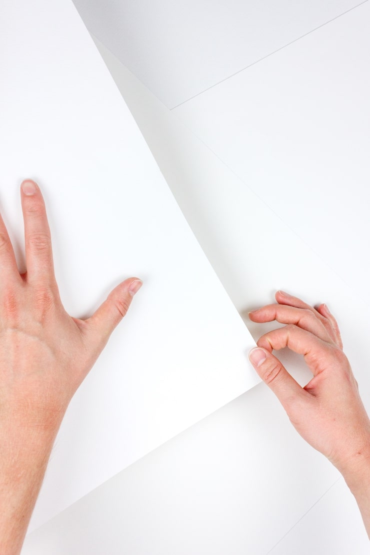 Начинаем с чистого листа бумаги, обозначаем линию обрезки для формирования квадрата, затем отрезаем излишки бумаги ножницами.