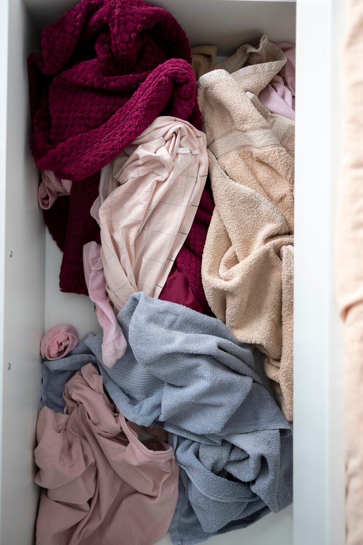 В шкафу нередко оказывается большое количество одежды, нуждающейся в ремонте или чистке. Эти вещи вполне пригодны для носки, однако на их восстановление не хватает времени, и стопка такой одежды постоянно увеличивается. При уборке шкафа необходимо собрать все эти вещи и привести их в состояние, пригодное для дальнейшего использования.