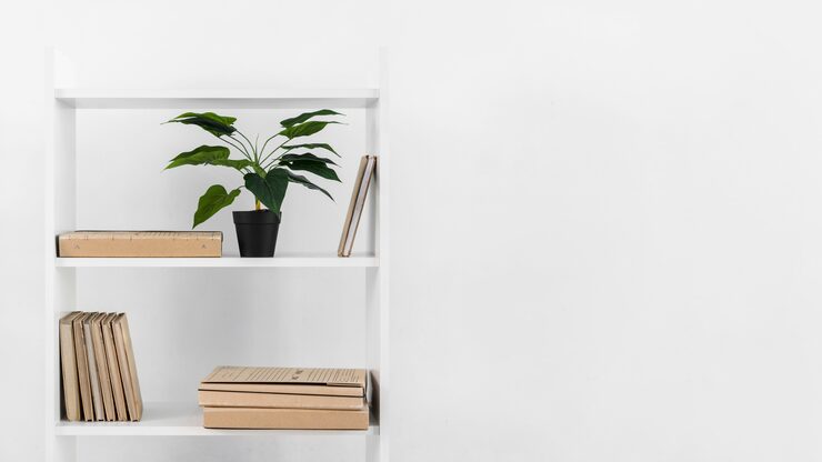 Когда нет возможности установить полноценный шкаф, стоит рассмотреть вариант использования стеллажей и полок, выделив для них часть комнаты или стены. Зачастую подходящее место находится в спальне, поскольку там редко бывают гости, и можно организовать хранение вещей в углу комнаты.