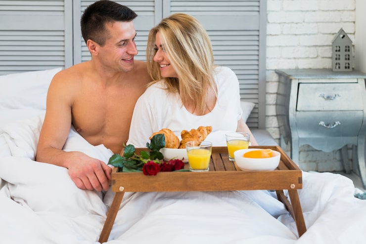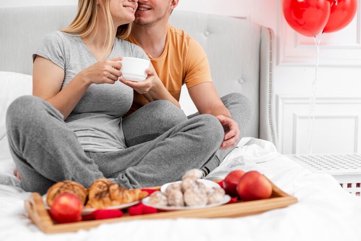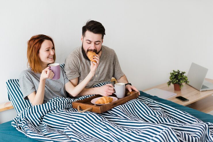 «Путь к сердцу мужчины лежит…». Это проверенная временем истина! И мы не будем отходить от традиции, а с самого утра начнем баловать любимого разнообразными угощениями. Не будем обращать внимание на сложные рецепты, такие как запеченное мясо или рыба под необычным соусом, ведь в интернете можно найти бесчисленное множество вариантов. Лучше сосредоточимся на красивом оформлении блюда. Даже обычная яичница будет выглядеть празднично, если приготовить ее в специальных формах. Нарежьте овощи и фрукты в форме сердечек. Вряд ли ваш любимый сможет устоять перед таким романтичным началом дня. (Надеемся, представители мужского пола тоже обратили внимание на эту статью, и 8 марта также порадуют своих партнерш).