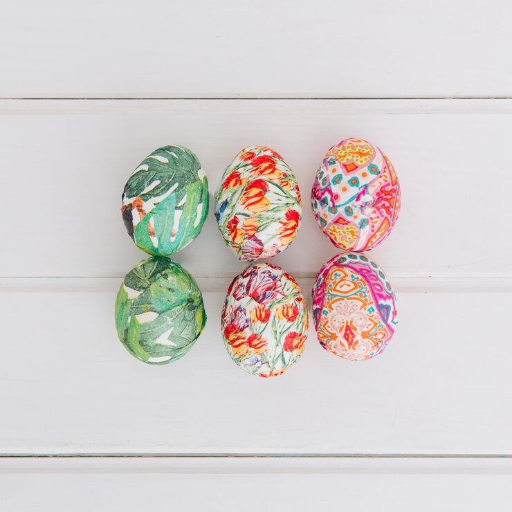 Возможно создание яйца как с однотонной, так и с полосатой окраской, контролируя смену цветов и определяя необходимую длину нити для каждого оборота. Для нанесения более сложного узора на изделие, его можно нанести непосредственно на основу, изобразив рисунок карандашом или тушью.