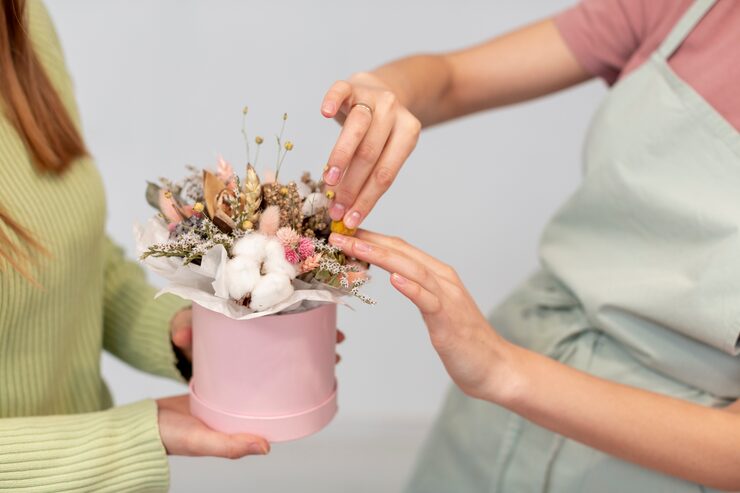 Можно также добавить один крупный цветок контрастного цвета к композиции из мелких.