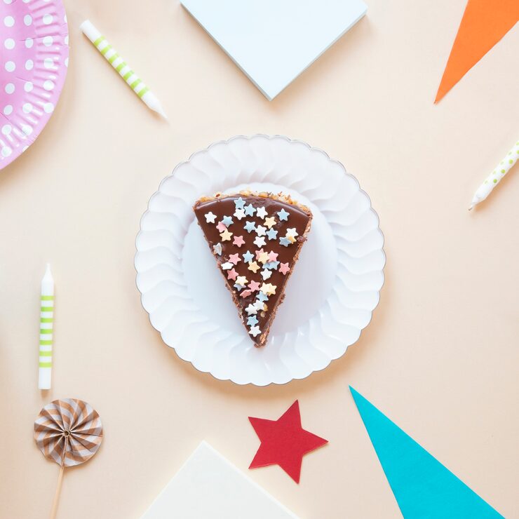 Из цветного картона можно вырезать большое количество небольших, несложных цветочков и расположить их по краю заготовки. Если торт и отдельные кусочки рассчитаны для девочек из класса, на каждом из них можно указать женское имя, чтобы сделать его персональным подарком для конкретной девочки.