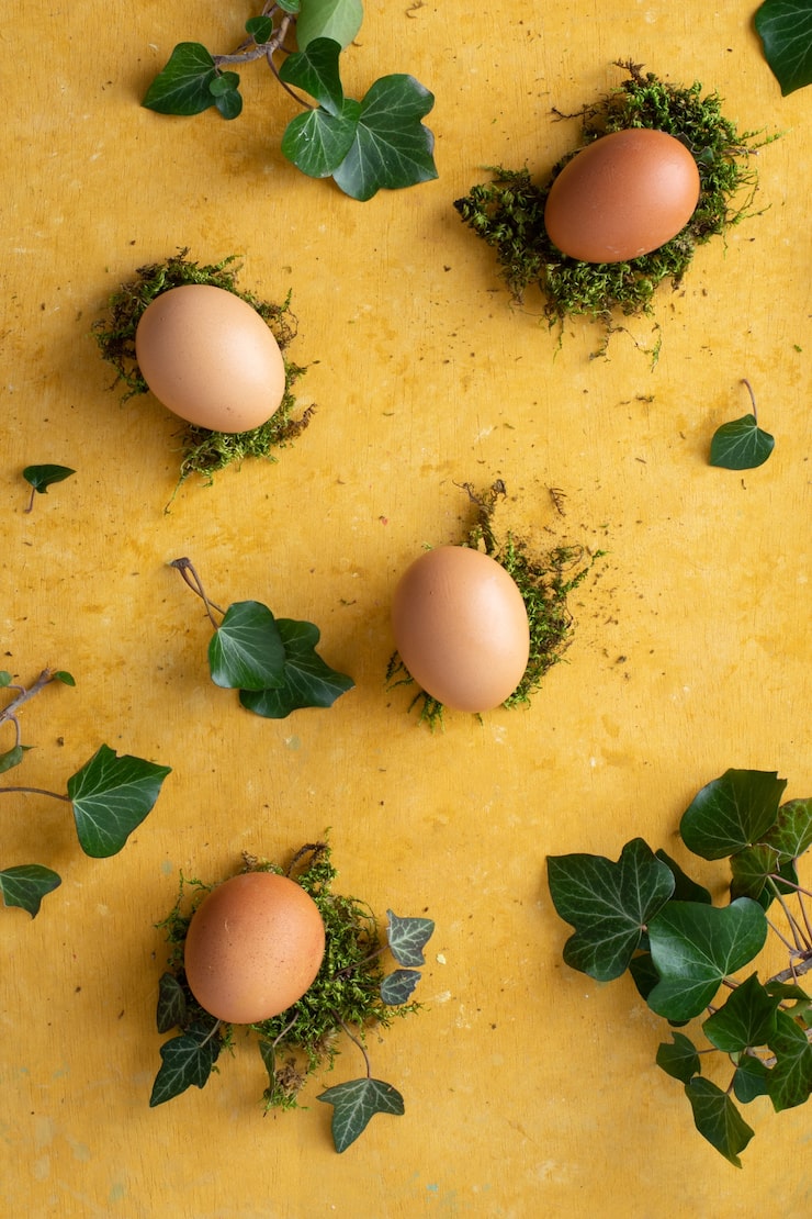 Можно использовать листья различных растений. Чаще всего выбирают веточки укропа или листочки петрушки, однако подойдут и другие варианты. Чтобы зафиксировать выбранный листочек на яйце, его следует обернуть марлей или тонкой тканью, завязав с обеих сторон, а затем поместить в краску.