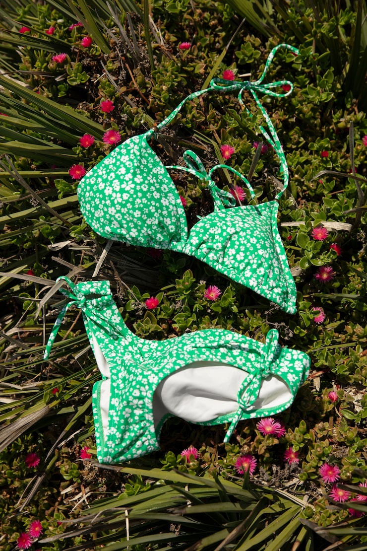 Цветочные узоры и рисунки также пользуются широкой популярностью. Крупные цветы и лепестки на слитном купальнике способны скрыть незначительные дефекты фигуры, а на раздельном – зрительно подчеркнут объем груди. Аналогичный эффект дает купальник с оборками у декольте, что также вошло в число актуальных тенденций 2018 года.