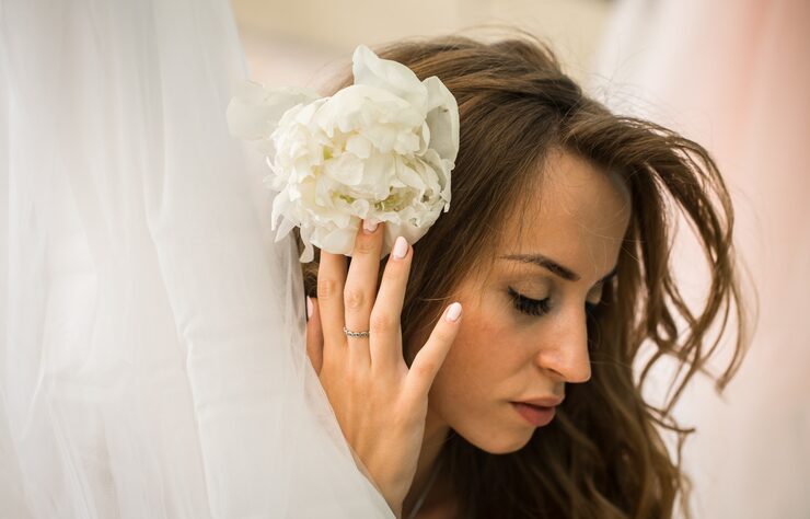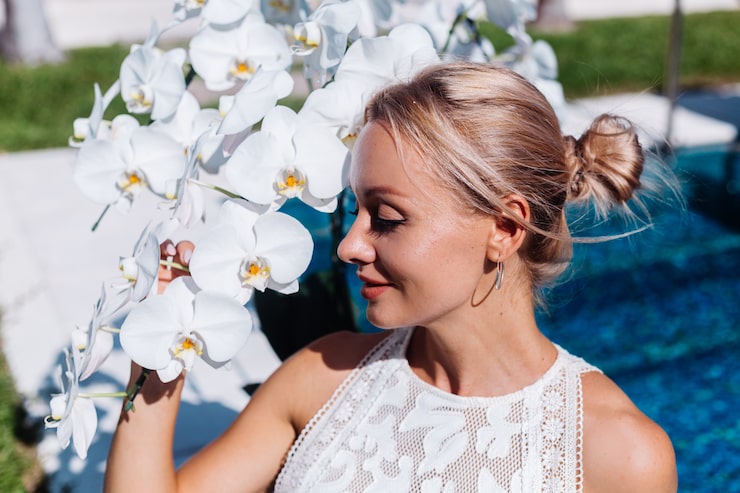 Использование небольших, но ярких бутонов цветов пользуется особой популярностью. Для этого часто выбирают маленькие розы, гвоздики или лилии. Безусловно, носить живые цветы в волосах в течение всего дня может быть непросто и не всегда комфортно, однако красота такого решения того стоит. Вместо нескольких маленьких цветков можно использовать один, более крупный. Обычно его крепят сбоку, у виска, или сзади, чтобы зафиксировать прическу.