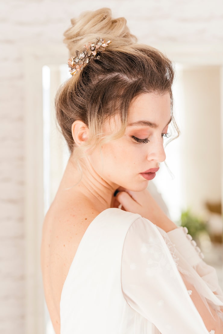 Определение подходящей свадебной прически во многом определяется формой и размером фаты. Как правило, фата фиксируется на затылке, для чего применяются специальные булавки и заколки, выполненные в виде бусин, цветов или снежинок. Основное правило создания красивой свадебной укладки – умеренность. Избыточное количество цветов или украшений может отвлечь внимание и испортить целостный образ.