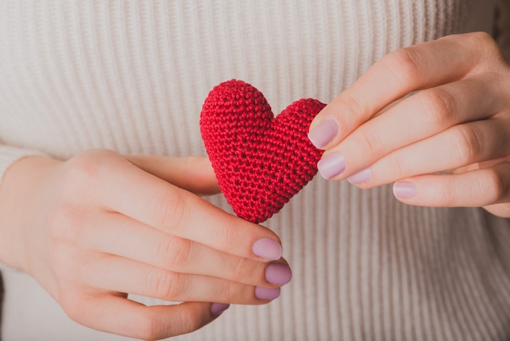 Аккуратно прижмите края красного сердца. Используйте зубочистку, чтобы слегка взрыхлить его поверхность.