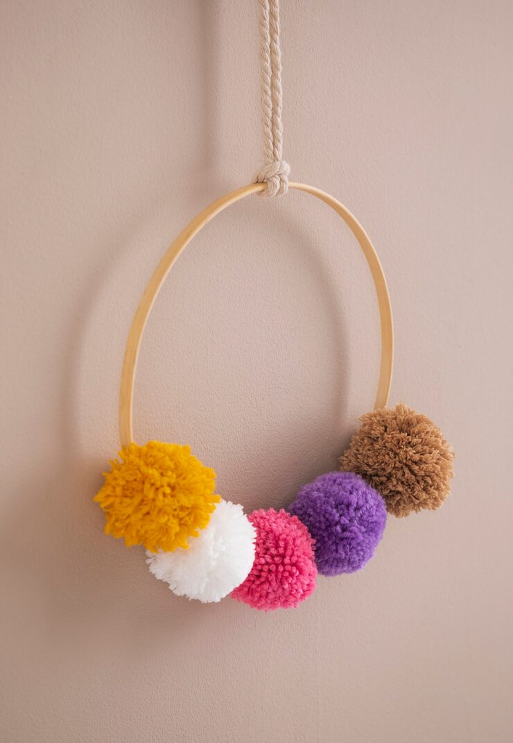 Далее следует изготовление помпонов. Хотя их потребуется создать в большом количестве и на каждый помпон придется затратить определенное время, приобретенные навыки и опыт позволят выполнить эту задачу достаточно оперативно. Привлечение ребенка к процессу сделает его интересным и не займет много времени.