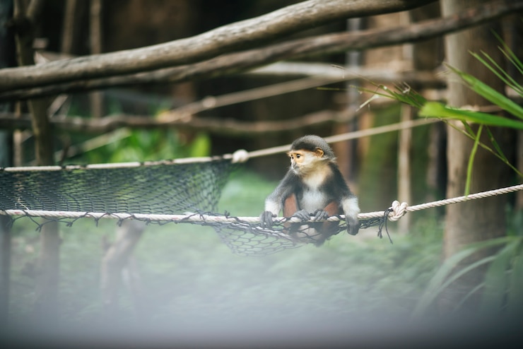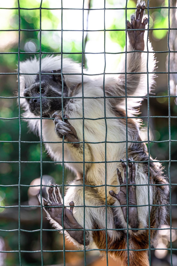 В вольерах содержатся обезьяны, представляющие различные виды.