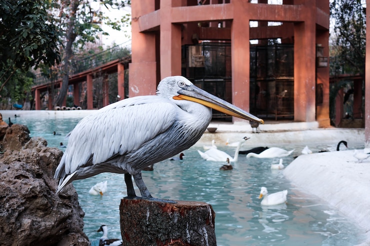 На территории комплекса также предусмотрены тематические зоны, в частности, несколько вольеров, где содержатся как знакомые, так и экзотические виды птиц.