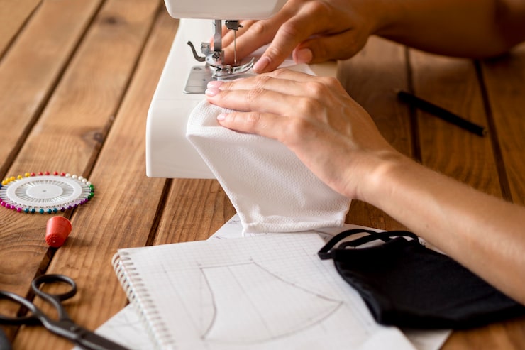 Для изготовления маски необходимо вставить готовую резинку в края и застрочить по предварительно отмеченной линии. При этом следует оставить небольшое отверстие в верхней части, чтобы впоследствии можно было вывернуть изделие.