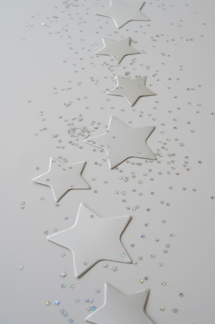 Бумажные звездочки большого размера часто применяют для декорирования новогодних подарков. Их можно прикрепить к упаковке с помощью клея или скотча. Эти фигурки могут различаться по размеру и соединяться между собой. Сочетание небольших и крупных бумажных звездочек – это оригинальный способ украсить подарок.