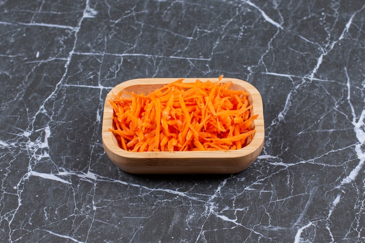 Для приготовления лучше использовать столовую свеклу с насыщенным цветом. Очищенный и промытый корнеплод нарезают тонкими ломтиками. Морковь очищают, споласкивают и натирают на крупной терке.