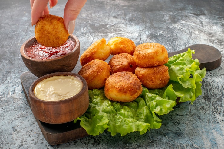 Данное блюдо станет прекрасным дополнением к основному блюду или самостоятельным угощением. Насыщенный вкус ему придает грибная начинка. Картофельные крокеты с грибами хорошо сочетаются с различными соусами, однако оптимальным выбором будет сметанный соус.
