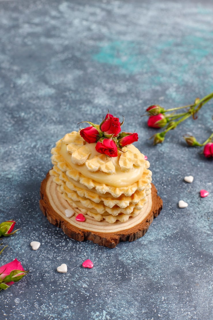 Вафельные коржи можно найти практически в любом супермаркете. Они отличаются по диаметру, форме, и сейчас нередко встречаются разноцветные варианты. Именно такие вафельные коржи понадобятся нам для приготовления простого домашнего десерта со сгущенкой.