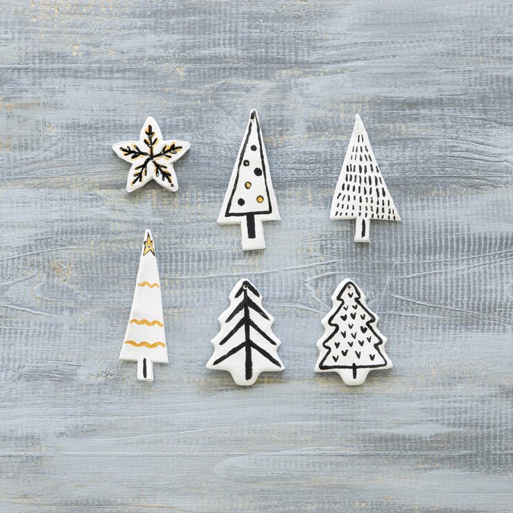 Для изготовления ёлочек из фетра требуется вырезать по две детали каждой, которые затем будут сшиты. Декорирование этих ёлочек может быть выполнено мастером в любой понравившейся ему манере, с использованием пуговиц, лент, бисера и других элементов. Однако, не стоит использовать избыточное количество украшений, чтобы не ухудшить конечный вид изделия.