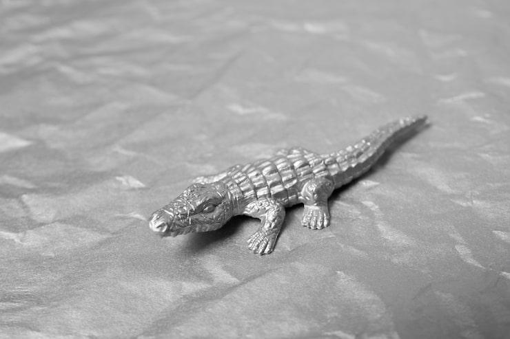 За счет своей гибкой конструкции проволочный крокодильчик способен стоять на ногах.