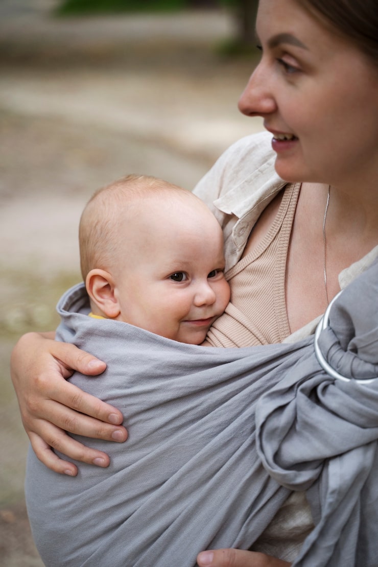 - В качестве альтернативы, маме потребуется освоить использование слинга без ребенка. Важно запомнить технику и узнать, как корректно затягивать фиксаторы.