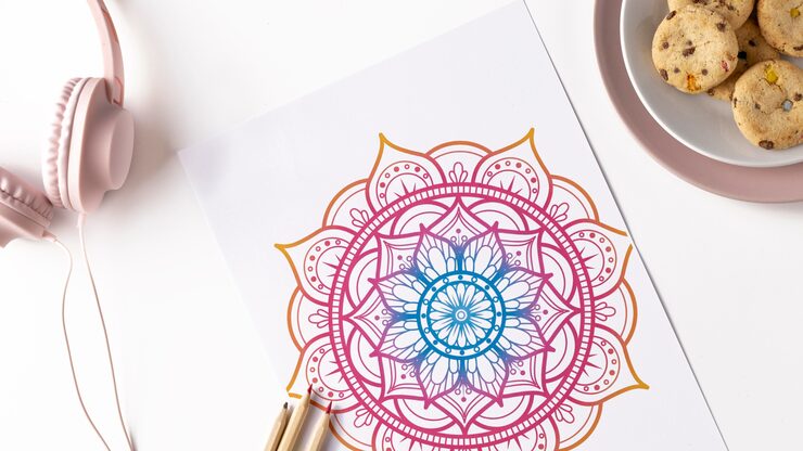 Чтобы завершить работу над мандалой, закрепите все нити на изнаночной стороне, аккуратно скрывая узелки между стежками.