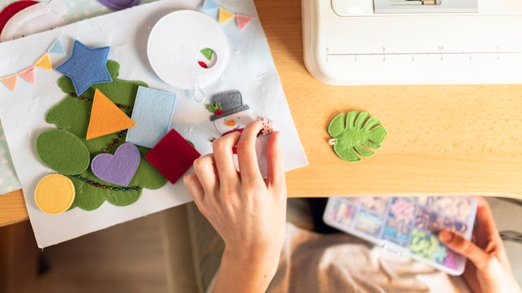 - К тесьме добавляем декоративные элементы: аппликации в виде цветочных мотивов и бабочек, выполненные из фетра.