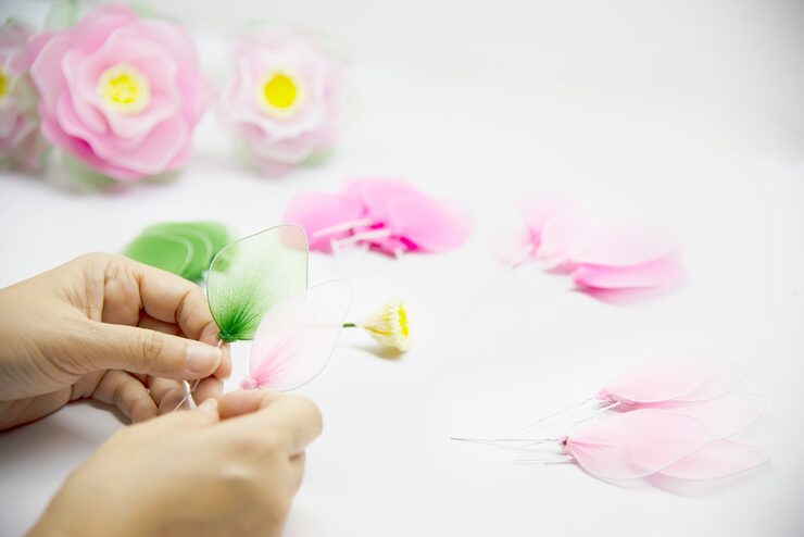 Изящные композиции и декоративные детали для ободков, украшений, брошей, а также для оформления подарков к праздникам создают из этого нежного цветка.