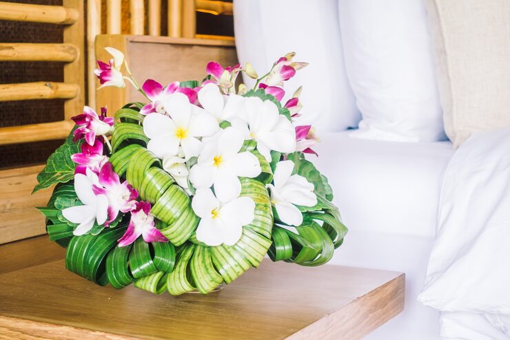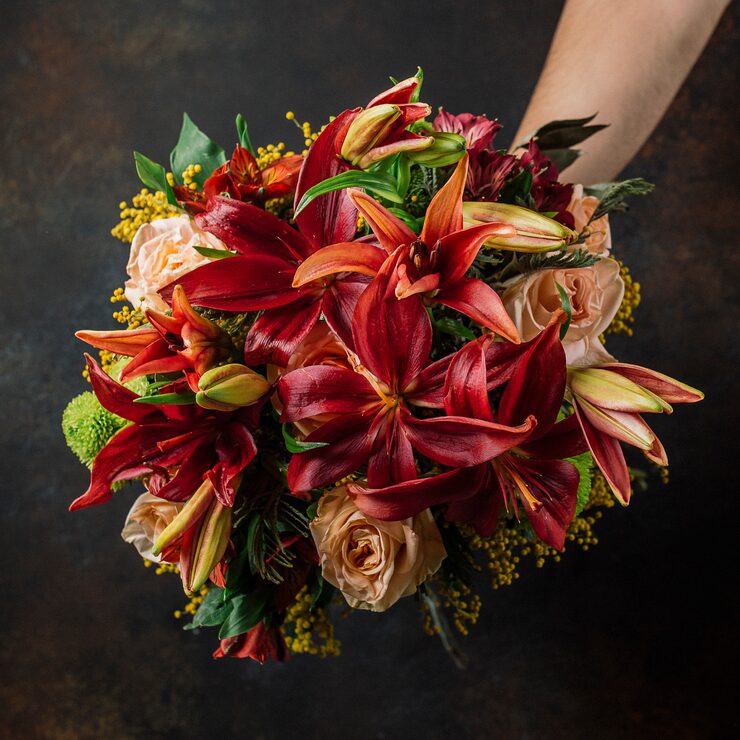 После фиксации стеблей, начинайте осторожно распрямлять их, чтобы сформировать живописный, насыщенный букет из экзотических цветов.