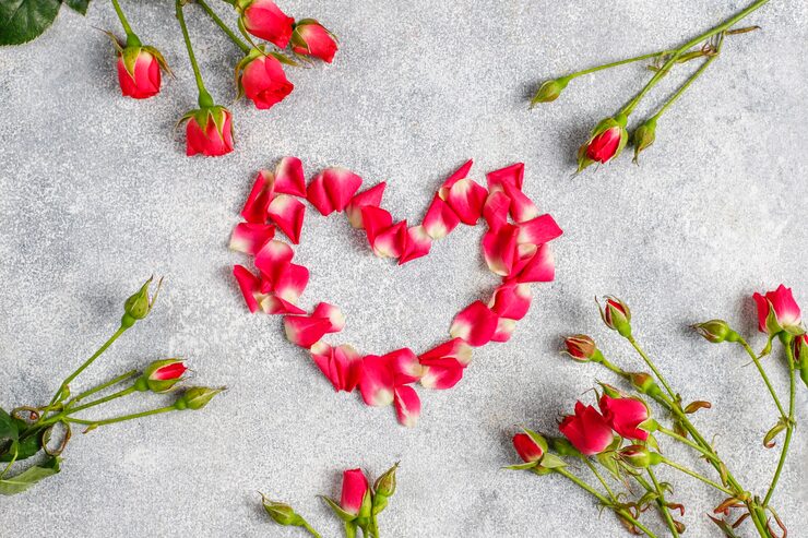 Для работы понадобится шаблон сердца, от которого будет зависеть размер будущего цветка. Теперь из пяти-семи листов бумаги вырежьте сердечки – это будут лепестки.