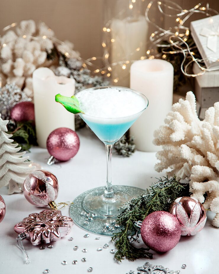 Использование обычных бокалов для создания зимнего декора и расстановки крупных свечей – это простой способ придать праздничной сервировке изысканный вид.