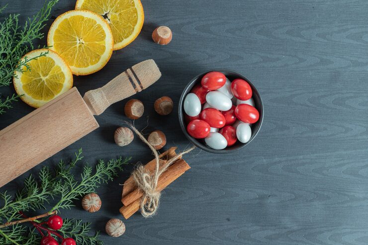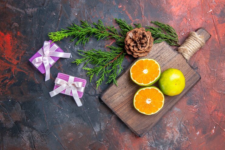 Цитрусовые добавят особого шарма. Яркие мандарины, апельсины и лимоны, расположенные на фоне зелени еловых веток, привлекут взгляд, согреют атмосферу и наполнят комнату светом и уютом.