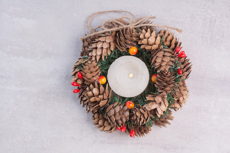Для декора также подойдут свечи-таблетки, которые можно искусно украсить кружевом, стразами или природными материалами.
