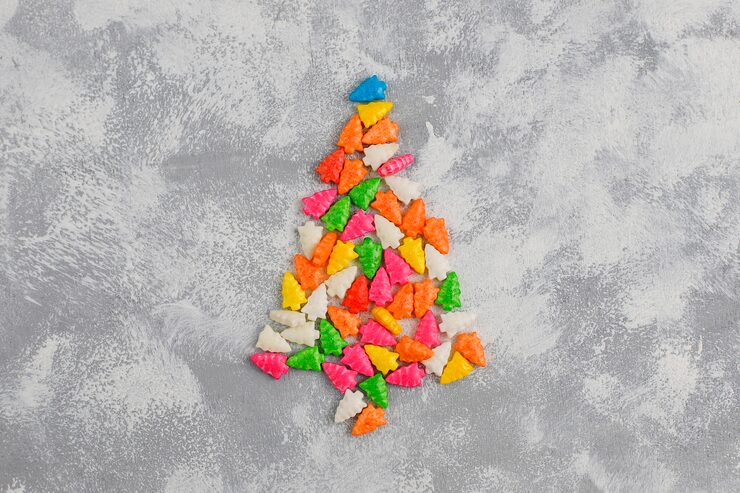 Подобные сладкие фигурки наверняка понравятся детям! Экспериментируйте с различными сочетаниями цветов, чтобы елочка получилась максимально красочной.