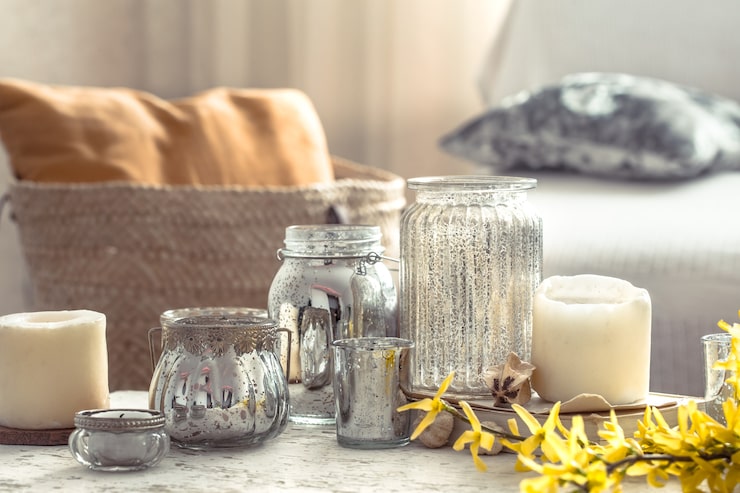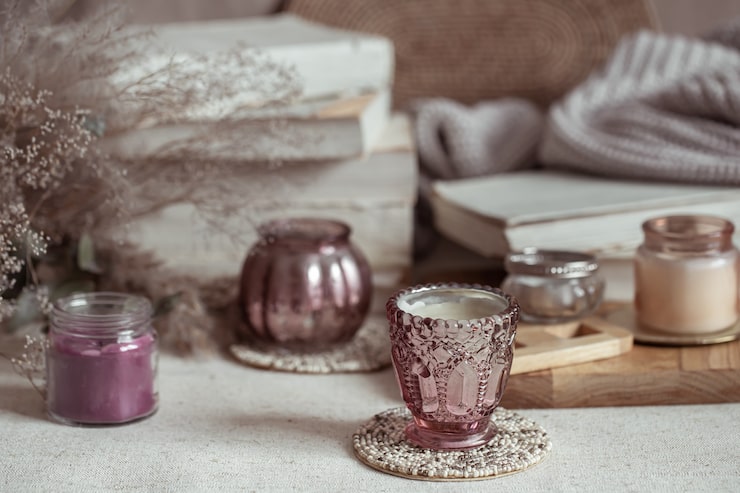 Для украшения баночек можно использовать ленты, стразы и бусины. Покрытие баночки краской возможно с помощью баллончика или кисти. Небольшой совет: при заливке воска удерживайте фитиль руками или зафиксируйте его на деревянной палочке, чтобы он не опустился в воск.