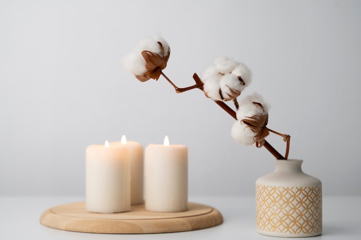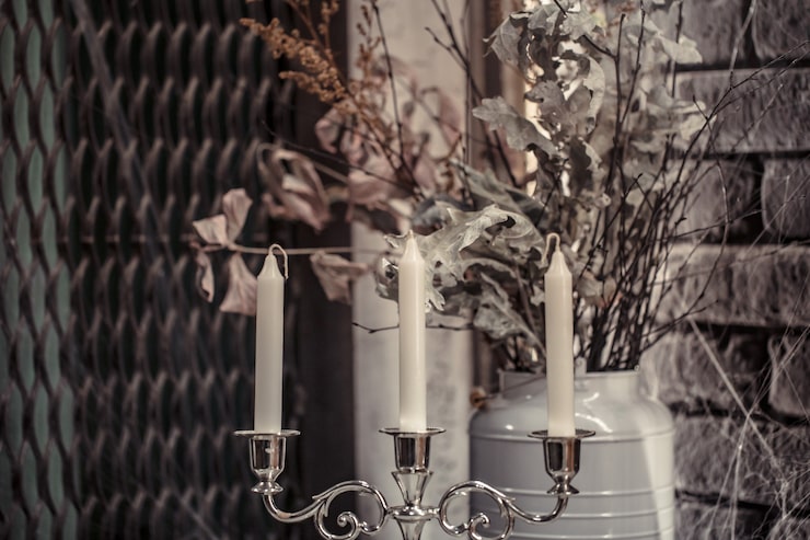 Иногда достаточно просто обмотать свечу декоративными белыми лентами с белыми цветами. Выбор декоративных элементов зависит от стилистики мероприятия и выбранной цветовой палитры.