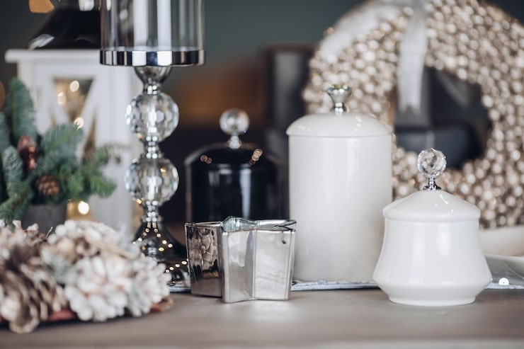 Чтобы создать праздничную сервировку, потребуются бокалы (подходящие для мартини или шампанского), свечи-таблетки, а также декоративные элементы, такие как шишки, мишура, искусственные веточки, цветы или сушеные цветы).