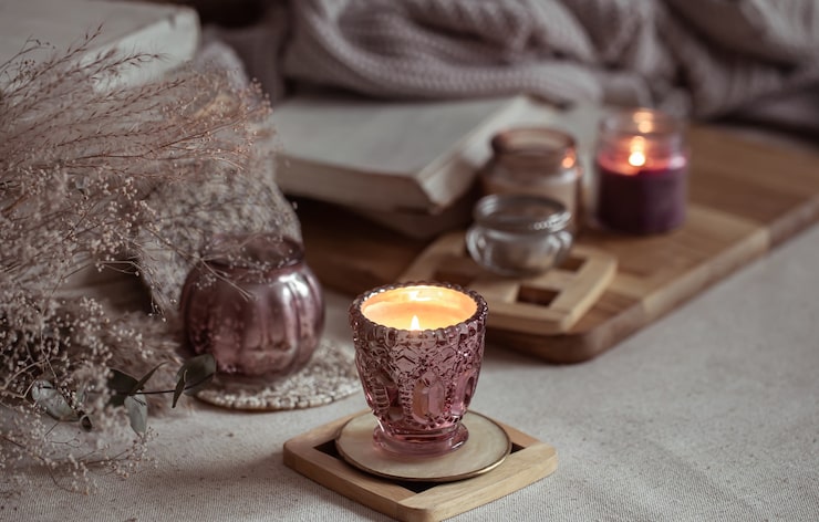 Свечи можно разместить и внутри бокала, добавив воду или декоративные элементы: