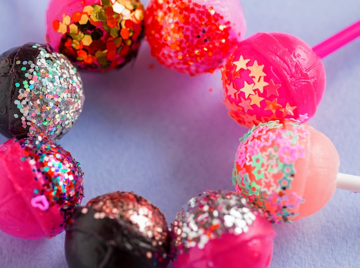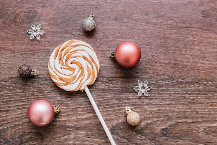 Для изготовления декоративного шара можно воспользоваться методикой, аналогичной той, что применяется при создании новогодней елки. В качестве основы подойдет пенопластовый шар, на который с помощью зубочисток можно закрепить небольшие конфеты: