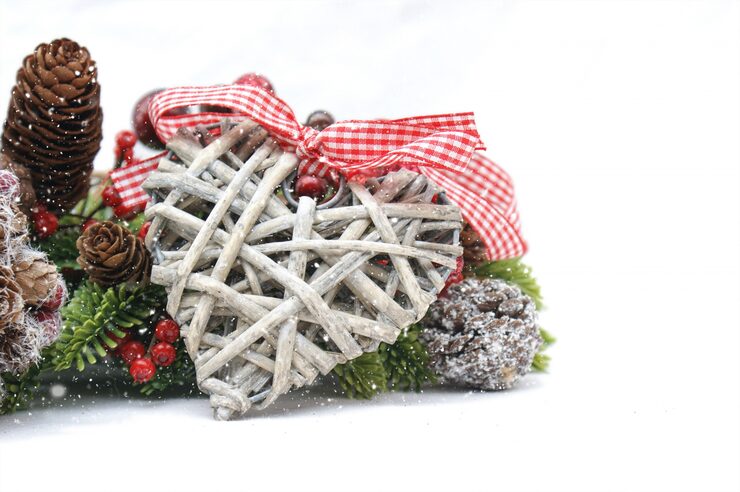 Для крепления более тонкой проволоки к концам этого каркаса, на нее впоследствии будут нанизываться различные бусинки. Далее необходимо обмотать проволокой с бисеринками получившийся скелет изделия. Для декора можно добавить несколько крупных бусин или жемчужин. В завершение из толстой проволоки следует изготовить крючок и повесить готовое изделие на елку.