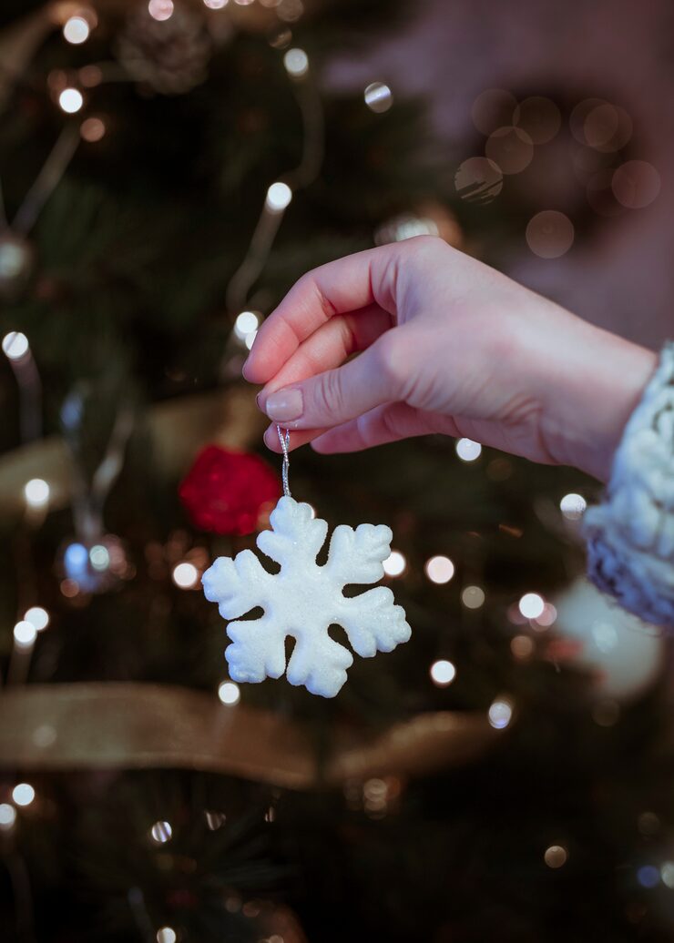 Новогодний декор завершен! Вы можете использовать и другие цвета. К слову, такую снежинку можно использовать как кулон или как элемент новогоднего костюма.