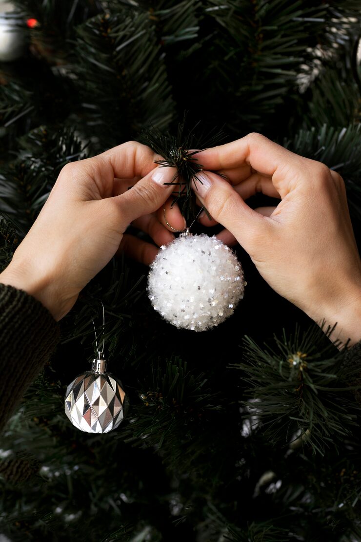 Для крепления шара на елке потребуется небольшое пространство, предназначенное для ленты.