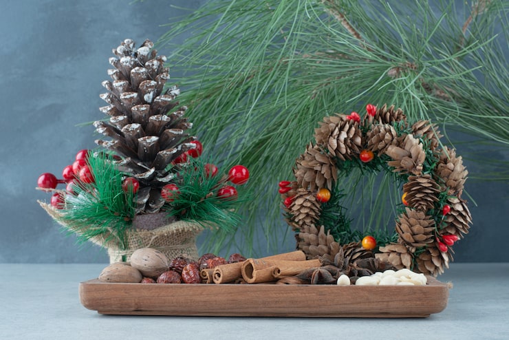 Вот еще один простой способ создания елочной композиции. Получается очень мило, и такую елочку можно смело использовать для украшения праздничного стола. Такие елочки можно делать как в большом, так и в небольшом размере, чтобы поставить возле каждого гостя. Эти елочки можно будет забрать с собой домой в качестве памятного новогоднего сувенира.