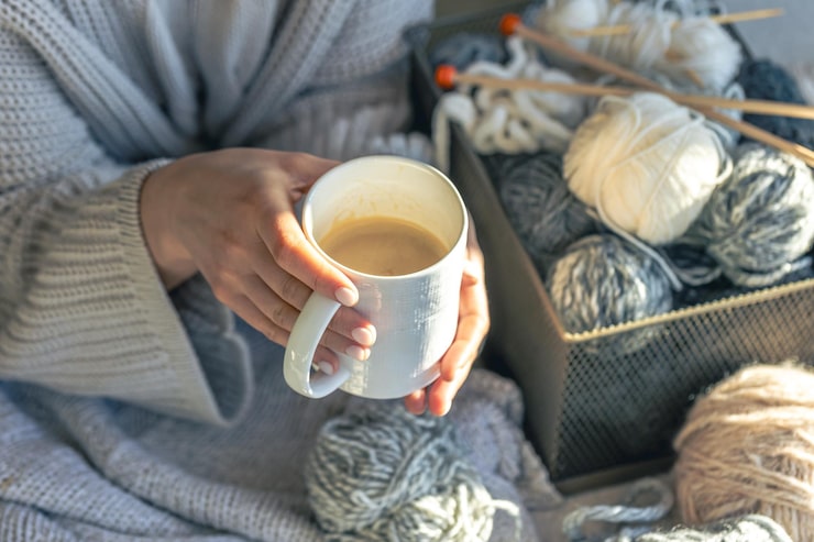 Чехол для кружки, выполненный в технике вязания или из фетра