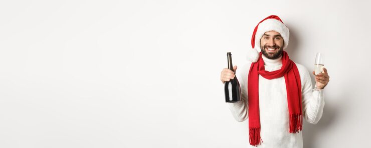Из фетра можно изготовить лицо для костюма Деда Мороза. Также стоит отметить, что изысканным подарком может стать красивая бутылка шампанского в сочетании с бокалами, подобранными в соответствующей цветовой гамме.