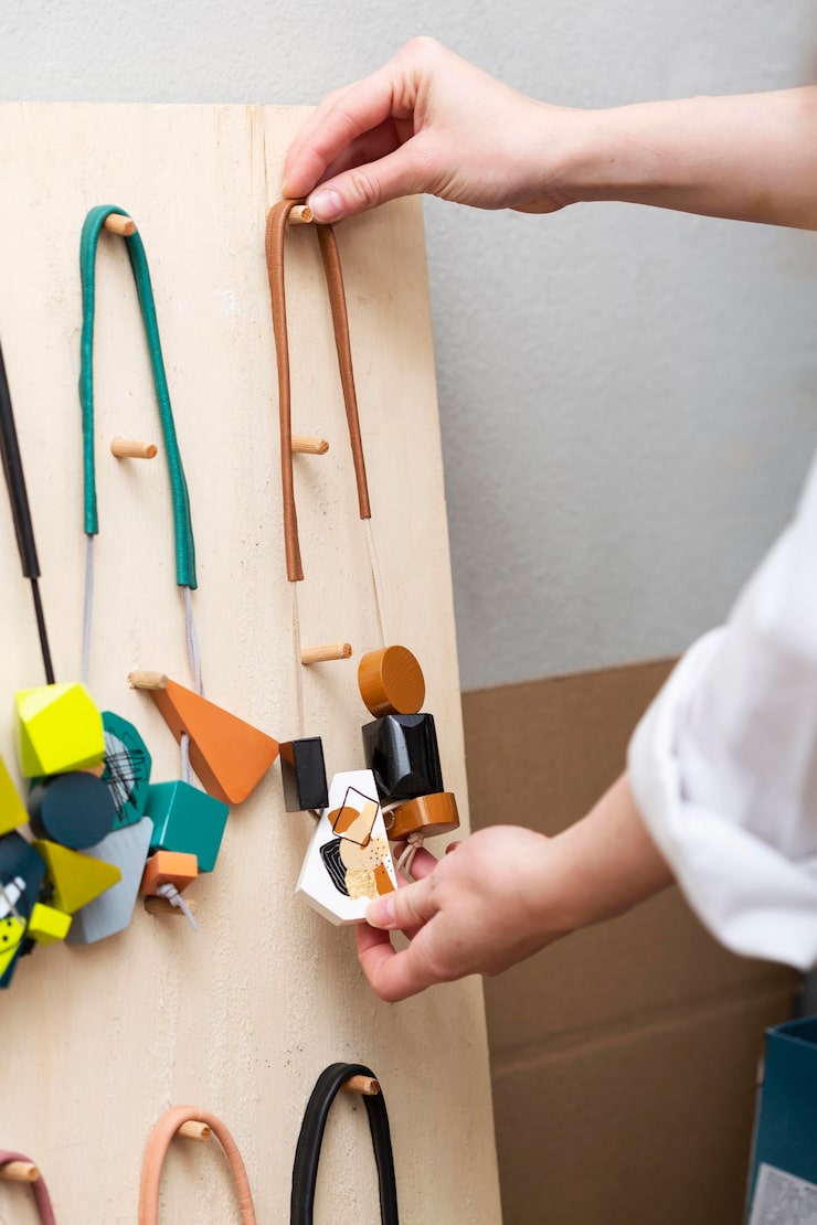 Для изготовления удобных ручек на ящиках можно использовать пуговицы или крупные бусины.