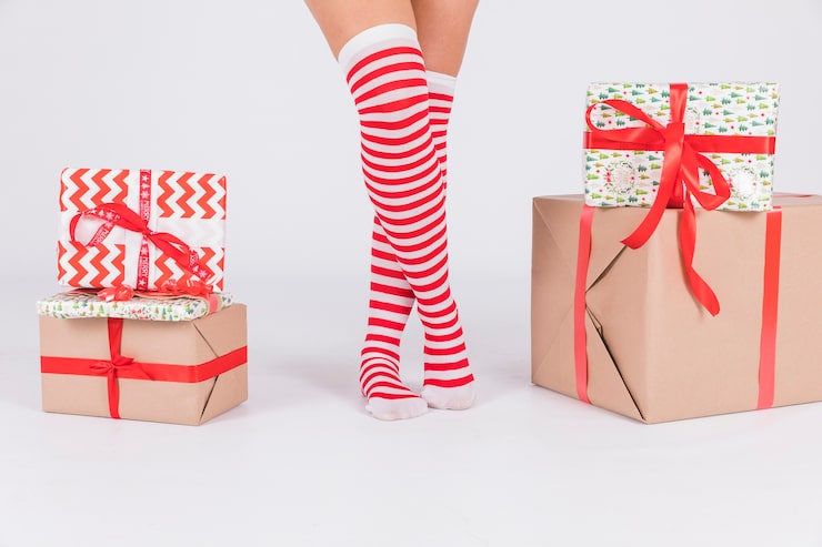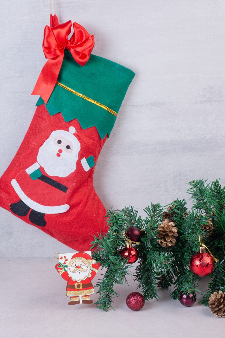 Один большой носок можно сшить и повесить, наполнив его конфетами.