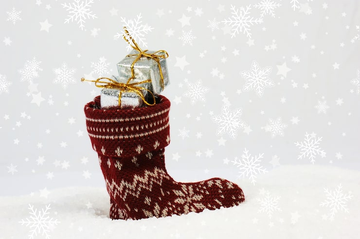 Для оформления рождественского сапога в качестве подарка можно использовать взрослые однотонные носки крупного размера. Добавьте манжеты, бусины, ленты, банты, аппликации новогодней тематики и другой декор. Такое украшение камина на Новый год создаст самую теплую и уютную атмосферу. Также можно использовать вязаные рукавицы или варежки, выполненные из мягкой ткани. Можно даже декорировать кухонные прихватки в новогоднем стиле.