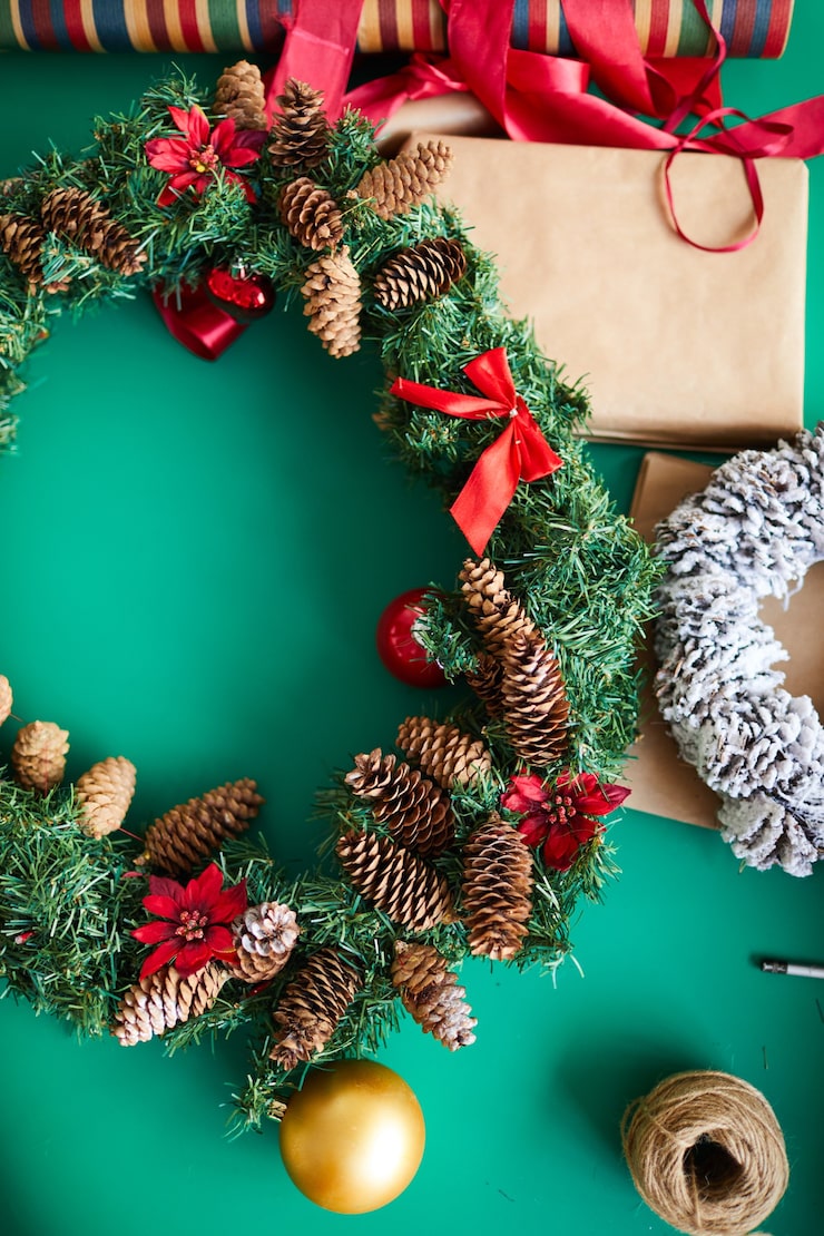 Для создания декоративных изделий рекомендуется использовать натуральные компоненты, такие как шишки, желуди и еловые ветки. В качестве основы подойдет прочный картон, на который с помощью клеевого пистолета будут крепиться элементы декора. Предварительно основу можно украсить бечевкой или мешковиной. В результате получится новогоднее украшение для детской комнаты, выполненное в стиле кантри.