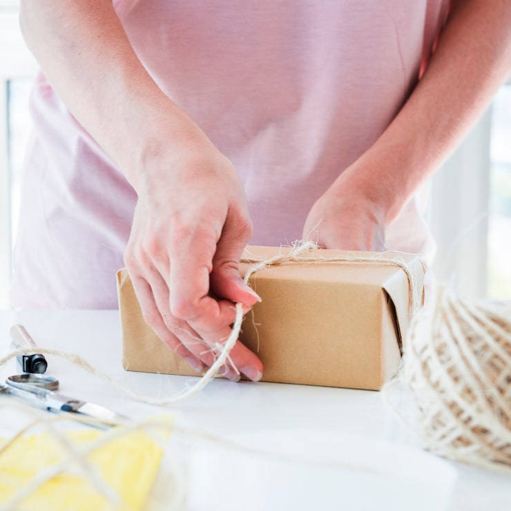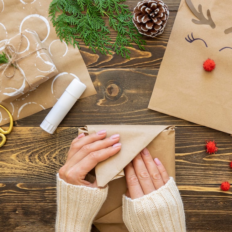 Для тех, кто ценит природу и натуральные материалы, коробку можно декорировать засушенными или свежими фруктами, а также еловыми ветками. Чтобы подарок дополнительно обладал приятным запахом, бумагу можно слегка смочить несколькими каплями эфирных масел.