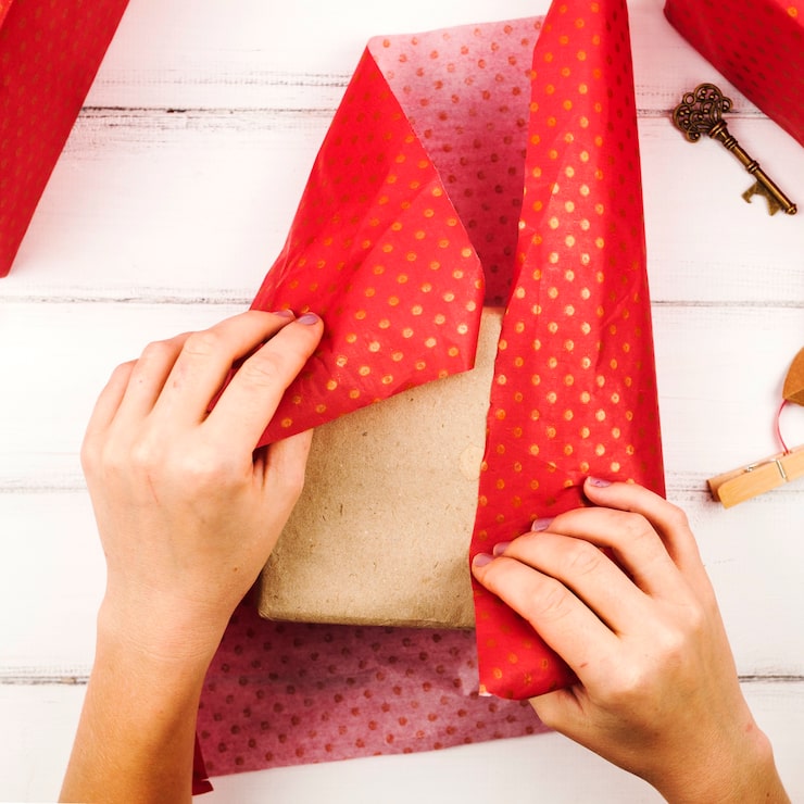 Поместите свой подарок внутрь упаковки, а затем украсьте ее цветной бумагой, фольгой, кружевом, бусинами, фатином и другими декоративными элементами.