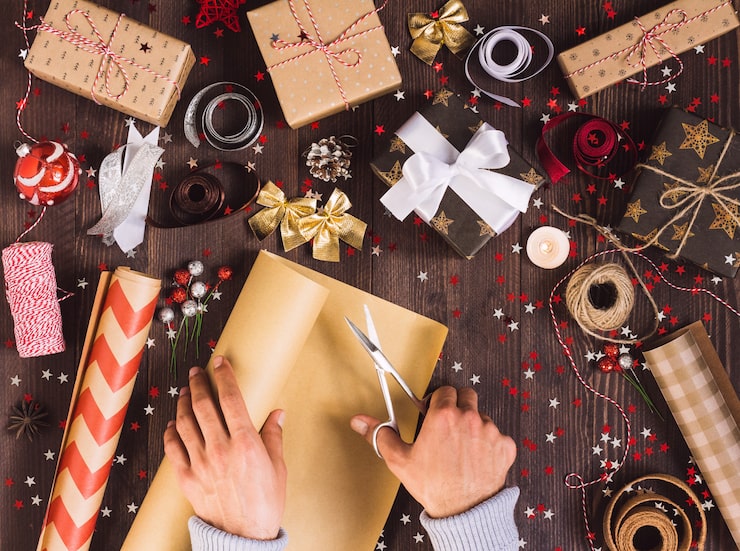 Выбор упаковки для подарка зависит от его размера: подойдут коробки, ранее использовавшиеся для обуви, электроники, бытовой техники, игрушек, духов или подарочных наборов. Для новогоднего оформления коробки своими руками можно использовать следующие материалы: